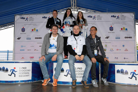 Teraz oddajmy głos najszybszej na dystansie 10 km. Andżelika Dzięgiel jest trenerką wspieranej przez PKO Bank Polski stadionowej akcji BiegamBoLubię w Toruniu. Zagadnęliśmy ją najpierw, z przymrużeniem oka, co torunianka robiła w Bydgoszczy. – Nic nie smakuje lepiej niż wygrana na terenie przeciwnika – zażartowała i dzieliła się wrażeniami. – Cieszę się, że zwyciężyłam ze sporą przewagą. Nie spodziewałam się tak łatwej wygranej. Pilnowałam się w trakcie biegu najszybszych mężczyzn. Trasa nie była przesadnie wymagająca. Podbiegi nie były męczące. Wiatr dał się we znaki. Trochę mnie umęczył, ale nie na tyle, żeby nie czuć przyjemności ze zwycięstwa. Napiszcie koniecznie, że organizacja była bez zarzutu i że jako organizatorka Toruń Run wspieram i kibicuję Festiwalowi w Bydgoszczy. Działa to oczywiście w dwie strony, zatem nie ma między nami żadnych animozji – zakończyła.
