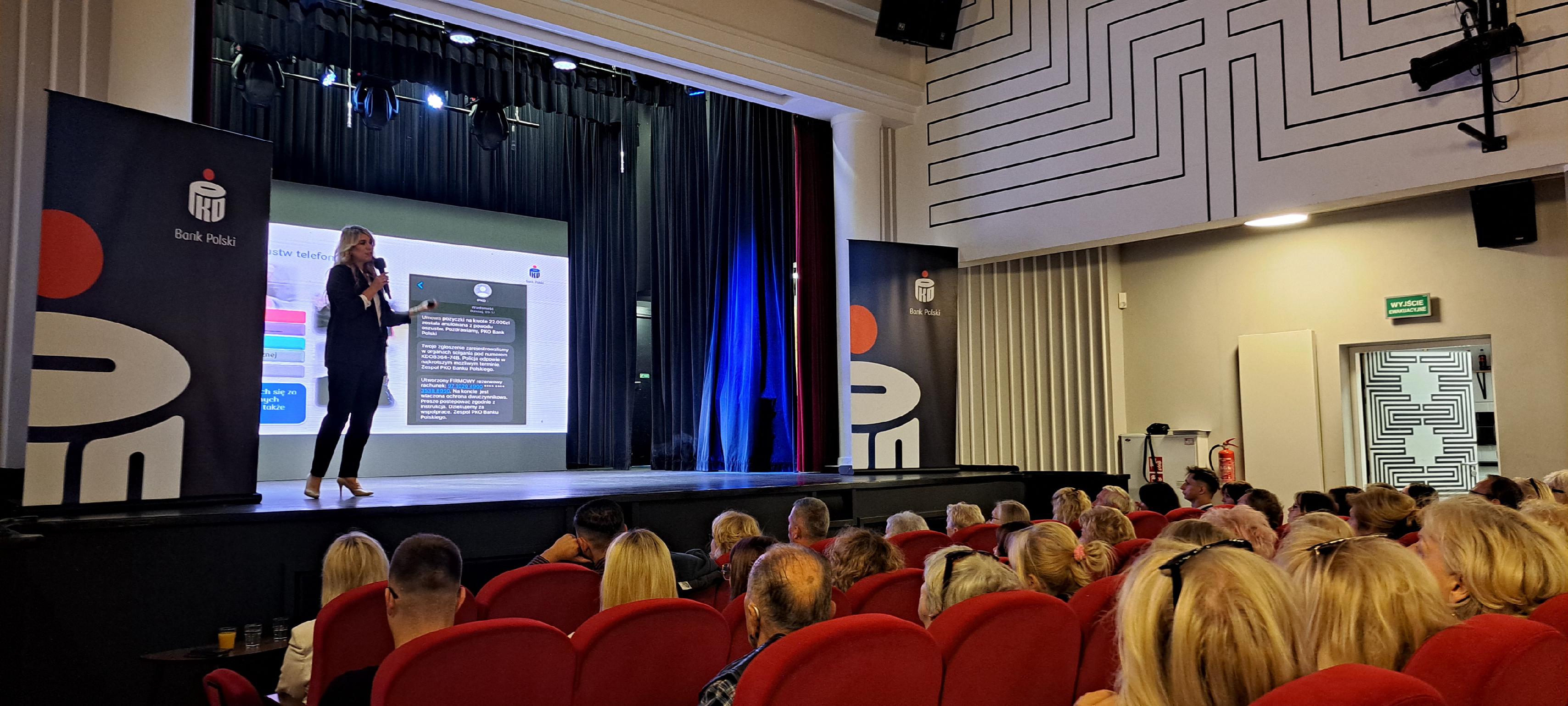 PKO Bank Polski zorganizował wyjątkowe spotkanie, w którym udział wzięli zarówno klienci młodzi, jaki i seniorzy. Spotkanie odbyło się w Teatrze Miejskim im. Stefana Jaracza w Otwocku. 2025-09-19Ponad 190 osób w wydarzeniu zorganizowanym w ramach cyklu „Cyberbezpieczny Ja i Moja Rodzina”. Koordynowała i poprowadziła je Dorota Herner, ekspert z Biura Inicjatyw Biznesowych i Jakości Operacyjnej w Departamencie Sieci i Wsparcia Sprzedaży PKO Banku Polskiego.